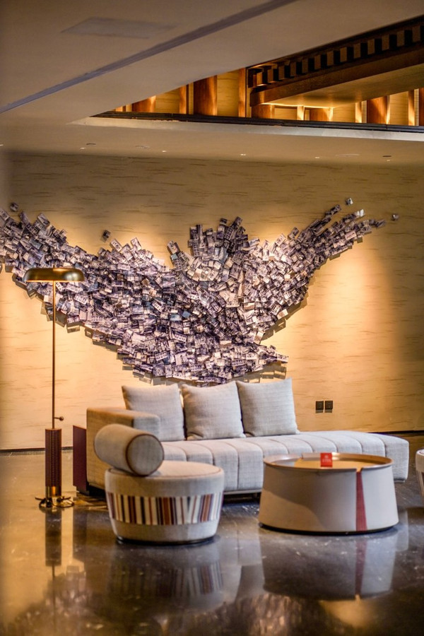 每一个英迪格酒店都会以当地特色为核心进行设计。而九寨英迪格酒店就以酒店所在的中查沟最有代表性的“神鹰”为特点,作为装饰的重点, 比如 大厅的墙饰、每个房间的门把手。
