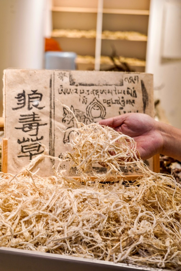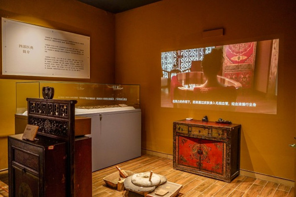 有一个区域专门展示藏药历史。藏药是在广泛吸收、融合了中医药学, 印度 医药学和大食医药学等理论的基础上,通过长期实践所形成的独特的医药体系,迄今已有上千年的历史,是我国较为完整、较有影响的民族药之一。