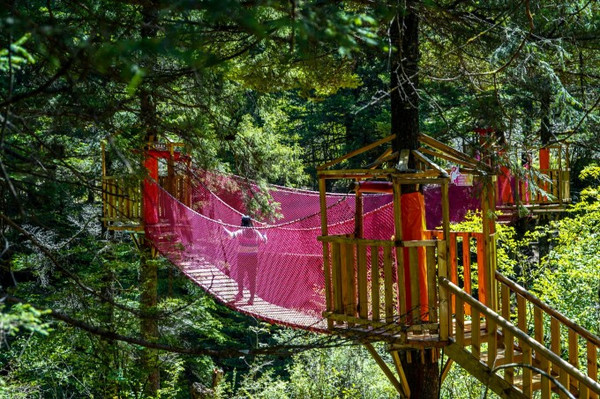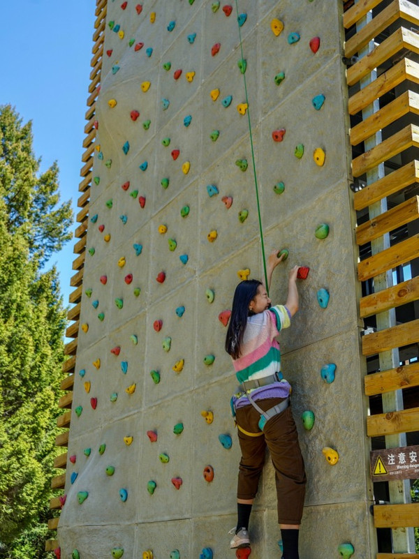 整个乐园包含12个体验子项目,林间项目、绳索攀爬、拓展运动、高山穿越探索、高空三角翼、滑索等多元玩法。