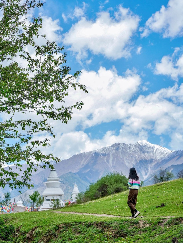 然后,就可以让当地人带着你骑着马上山坡和雪山顶拍照,真的太漂亮了。