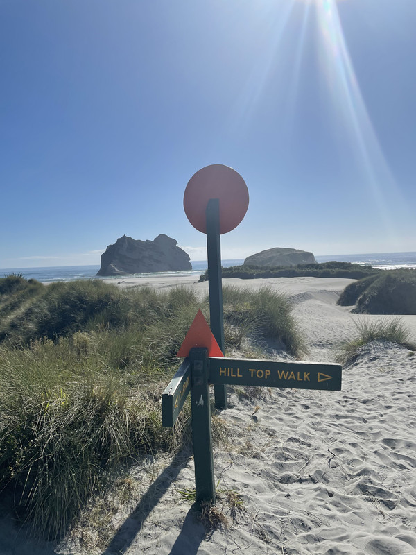 在这里上图一张差点儿热爆的本人照,哈哈哈,真的好热,大家一定做好防晒工作~接下来,我们去到了Cape Farewell,开车5分钟到达停车场,走路5分钟,可以看到在wharariki beach另一面的景色。