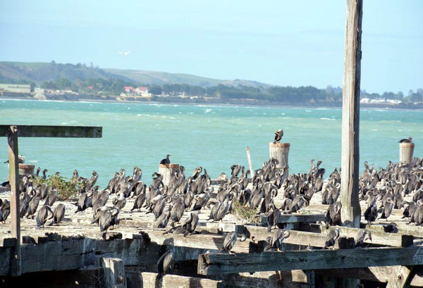 奥马鲁蓝企鹅保护中心附近的栈桥上,有很多水鸟。