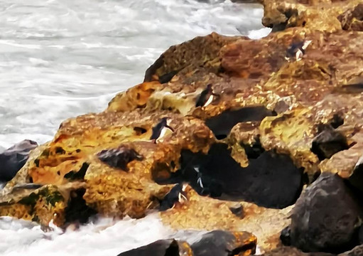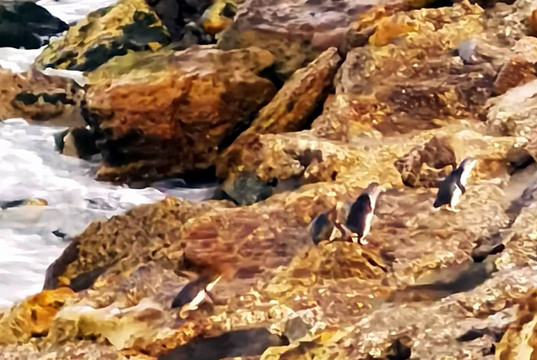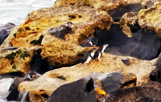 旺季的时候在保护中心里归巢的小蓝企鹅多达130多对,有时一夜之间就会有超过200只的蓝企鹅归巢。图为正在归巢的小蓝企鹅。