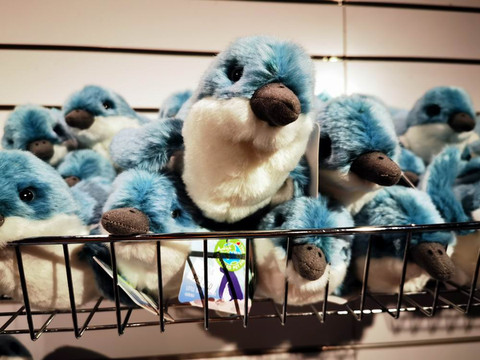 中心全年开放,每天傍晚时分企鹅便会回家(观企鹅时间会根据季节和企鹅活动的变化而变化),有专人讲解。图为保护中心出售的小蓝企鹅纪念品。
