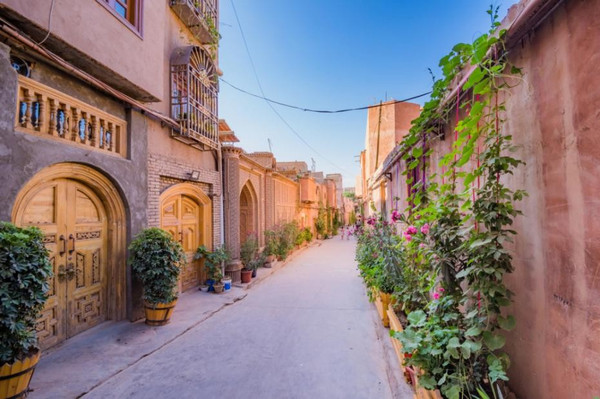 这是一座活着的千年古城,满眼土黄色调令古城韵味十足;斑斓彩绘装饰令古城更加鲜活;耳边环绕的悦耳旋律令古城热闹喧嚣。古城以解放北路为界,分为东西二区。老城核心区是世界上规模最大的生土建筑群之一,融合了汉唐、古罗马遗风和维吾尔民族现代生活的风格,街巷纵横交错、曲径通幽,是中国 唯一的以伊斯兰文化为特色的迷宫式城市街区。