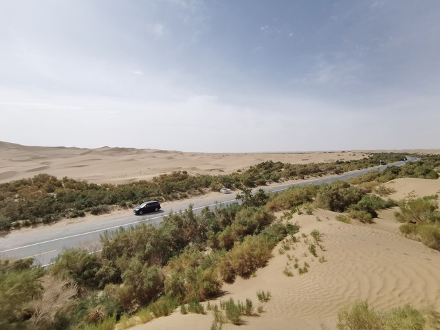 这就是这条路的基本情况,沙漠、公路、防护林带。