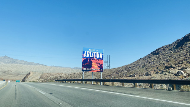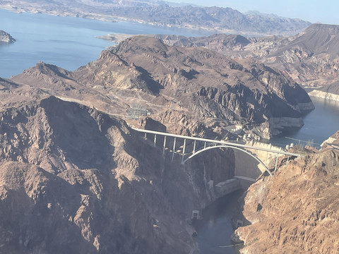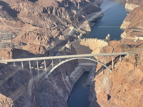 看着时间还早,大家一合计决定开去亚利桑那州的西大峡谷公园,单程车程两个多小时。西大峡谷公园的玻璃步道还蛮有名的,之前在很多大峡谷的旅游宣传片中都有看到过,算是一个地标性景点了。公园里的Eagle Point等观景点也都很有特色。拉斯维加斯市区到西大峡谷公园途中会路过胡佛大坝。11号州际公路在靠近胡佛大坝的地方有一个出口可以开上内华达172号州道(Hoover Dam Access Road),有观景台,也可以开车从胡佛大坝坝顶驶过。由于前一天已经在空中拍摄了胡佛大坝,我们便没有在中途停车。