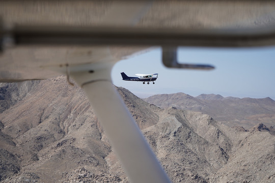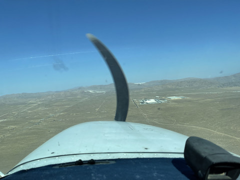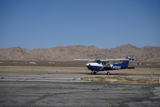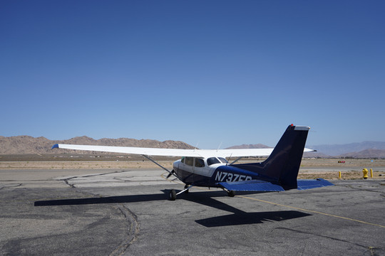 我们一行一共四人,分乘两架飞机。博主和女朋友一架,博主驾驶,并有一名飞行教员在右座提供一些飞行指导。同行的其他两位朋友乘坐由另一位飞行教员驾驶的飞机。南加州莫哈维沙漠的气候和博主熟悉的美国中西部平原的气候大有不同。莫哈维沙漠的高温、高海拔要求飞行员对发动机的转速、燃油的供给量等有着更高的精准度要求。