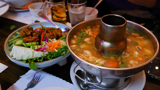 一把头开回拉斯维加斯。本来计划晚餐去鼎泰丰吃小笼包,结果发现排队等位的人实在太多,只能更改计划。大伙搜索一波后决定去一家叫Weera Thai的泰国菜餐厅。菜量比想象中要多很多,一份沙拉的量赶得上一份主食。六个人干完三份沙拉后就已经有了饱腹感。本来以为一份冰激凌是一个球就多点了几份,结果上来发现是三个球。为避免浪费,大家只能在吃撑的情况下再强塞几个冰激凌球。