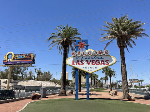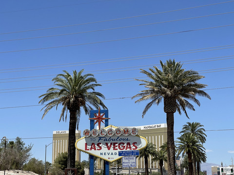 饭后开车去来拉斯维加斯必打卡的“欢迎来到绚丽的拉斯维加斯(Welcome to Fabulous Las Vegas)"招牌。招牌在机场附近,附近停车位还挺充足的。前来打卡的游客不少,排起了将近五十米的长队。虽然人多不过还算井然有序,差不多15分钟样子就排到了。
