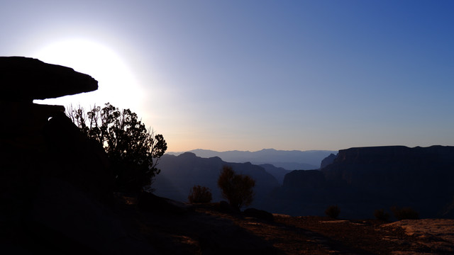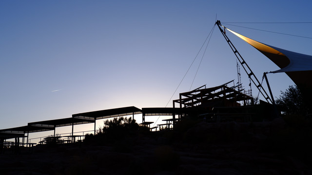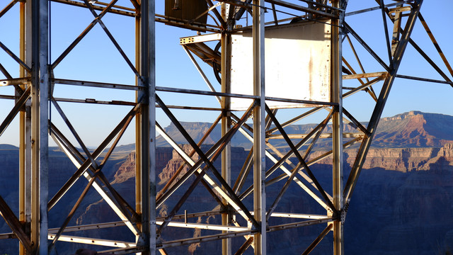 第三个巴士停靠点是Guano Point。爬到岩石顶端,向四周眺望,对着夕阳,拍出来的剪影效果还是蛮不错的。悬崖边还有一些从20世纪30年代遗留下来的采矿设备的遗迹。锈迹斑斑的钢铁结构加上以壮丽的大峡谷为背景,取景效果也是一绝。