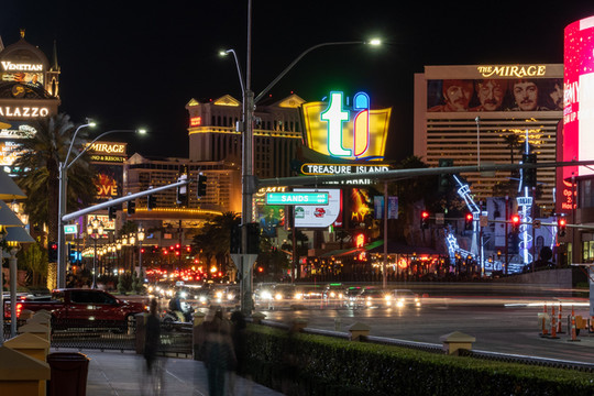 把车停回酒店,顺着拉斯维加斯大道向南走消消食。夜幕下的拉斯维加斯真的很出片。