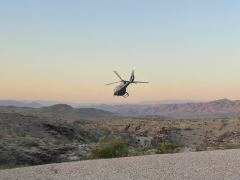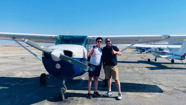 一大早驱车前往加利福尼亚州苹果谷机场(Apple Valley Airport)与之前联系好的飞行教员碰面。起飞前往10海里外的维克多维尔南加州后勤机场(Victorville Southern California Logistics Airport), 空中自驾游览一小时。降落后返回拉斯维加斯。