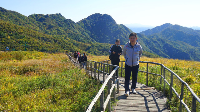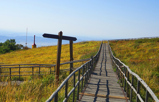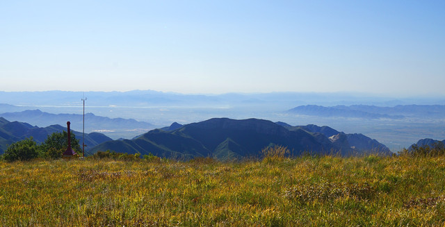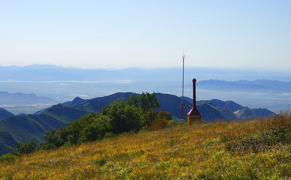 山顶上的草原,这在燕山山脉还是极为罕见的。天气好的时候,可以远望官厅水库的波光如镜。置身山顶,绿野阡陌,尽收眼底,山外青山,风情万般,可以举目千里,又能俯仰天地。