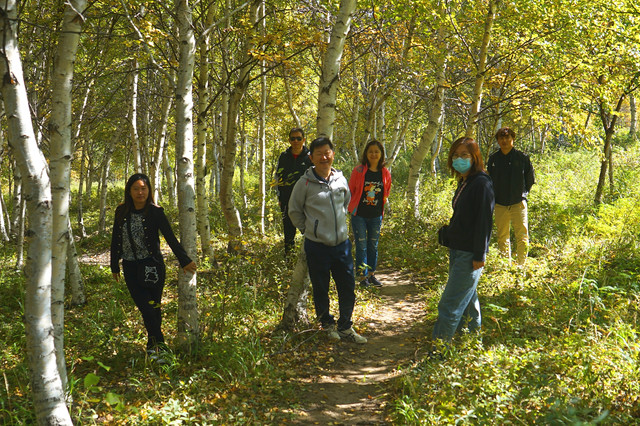 这是一片云中的草原,一片在高山之巅的草原,它的独特性恰是带有原始的野性。站在这里,既能欣赏高山的雄阔又尽享草原的无限风光。在这里,最吸引人目光是一片原始的白桦林。秋天的白桦林,它的叶子金黄,像一枚枚金币闪耀在山顶。这是白桦林托起的秋天,像一首首抒情曲或是抒情诗在天空中跳跃。天空低语,秋意暖融。这幅景象很像是印象派油画。画家在这里,可以说是与白桦林是最美的相遇。