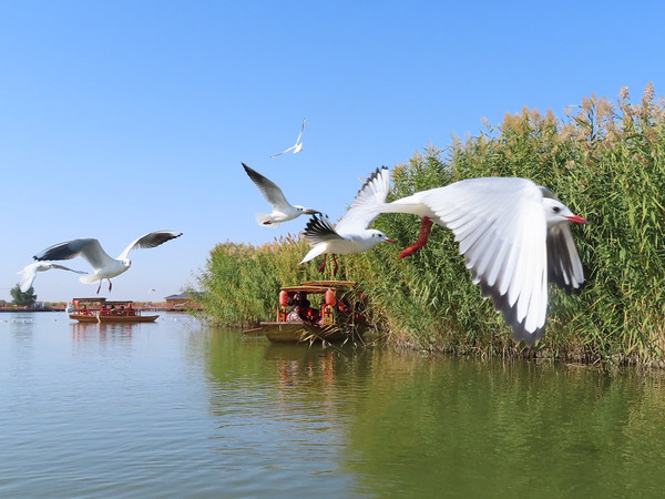 早餐后之后乘车前往阴山脚下旅游圣地——乌梁素海,【乌梁素海】—蒙语意外红柳湖。一片干枯的戈壁上突然出现总面积约44万亩的辽阔水域,对游客的视觉冲击是明显而直接的。其中150平方公里的蒲苇郁郁葱葱,星罗棋布,点缀于万顷湖中。乌梁素海水产丰富,风光旖旎,环境优美,是黄河流域最大的淡水湖泊和北方少有的鸟类观赏点。这里是鱼的乐园,鸟的天堂,素有“塞外明珠”之美称。午餐后乘车前往乌兰察布。