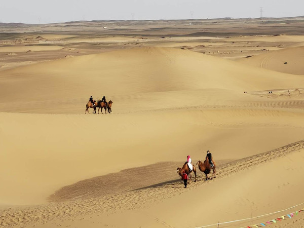 八道桥:此处是集巴丹吉林沙漠和胡杨林为一体的丰富景观,沙漠、胡杨、骆驼队和日落日出结合,是摄影家乐园。