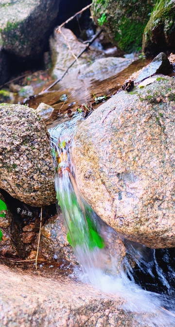 有山的地方自然有水,山水相依便生灵气,溪水声配上那一阵阵婉转如银铃般的鸟叫声为神秘的奇石谷添上一笔艺术的色彩。水面平静的时候,小池塘就像一面宝镜,映出蓝天白云的秀姿;微风吹来,水面泛起层层涟漪,如万条银鱼扭动着脊背,波光粼粼。