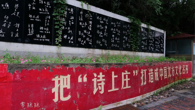 走进诗上庄,两岸青山巍峨矗立,山中植被茂盛,沟谷狭长,小村以诗歌为主题,处处弥漫着诗歌文化。