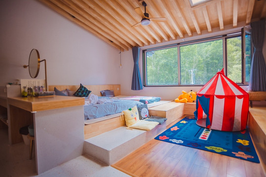💓【度假别院】亲子房特别赞,欢迎水果和冷泡茶、小吃都很美味,帐篷和玩具🪀宝宝超爱!这里距离餐厅沙坑和小溪都很近,适合贪玩的宝宝们!