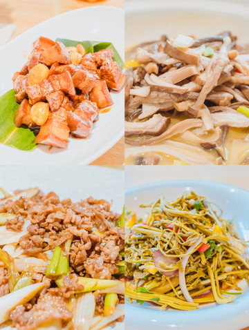 地道农家菜,还有些创意美食,推荐泉水鱼、山菌、土鸡、炸虾等等。早餐自助在这里,丰盛味美!