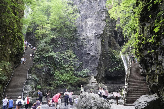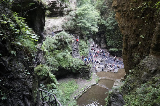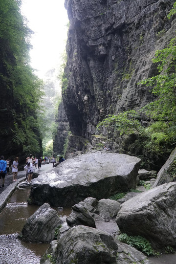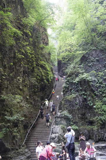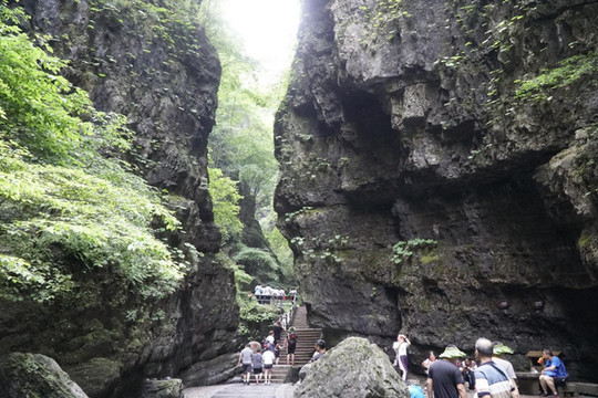电视剧《三国演义》曹操败走华容道在此取景。峡谷两壁近与直立,如斧劈刀削,地质学称“嶂谷”。它的形成是由岩层中发育了多组垂直裂隙(地质学上称为“构造节理”),后期又经崩塌和山间流水冲刷、侵蚀形成。