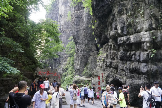 百里峡是野三坡独具特色的景区之一,被誉为“天下第一峡”。在“双崖依天立,万仞从地劈”的百里“构造嶂谷”中,峭壁千仞、危崖绝壁、夹涧野趣、移步换景。多期强烈的构造运动和岩浆活动留下了一幅幅雄伟的历史画卷。