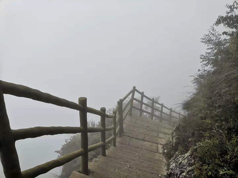 白石山中间部分还有一个能做缆车的地方 台阶挺抖的 如果你腿脚好就从上面的路过来去下山 膝盖不太好的就走下面的那条路吧 因为下山真的是费膝盖 ····