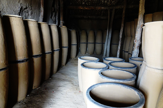 老师傅的捏制黑陶手艺是祖传的,已经捏制了30多年。库房里还整整齐齐的排列着不少捏制好的陶器,就等着上釉后进行烧制了。由于如今陶器的市场需求少,再加上煤炭价格日益攀升,烧制陶器大多选择以实用性为主的缸或者瓮。