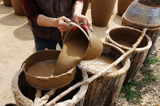 据考证,蔚县的制陶史可以远推到仰韶文化时期,制作黑陶从选料到成品,其中要经过粉碎过筛,闷泥、踩揉、捏制、晾晒、上釉、装窑、烧窑、出窑等十多道工序。