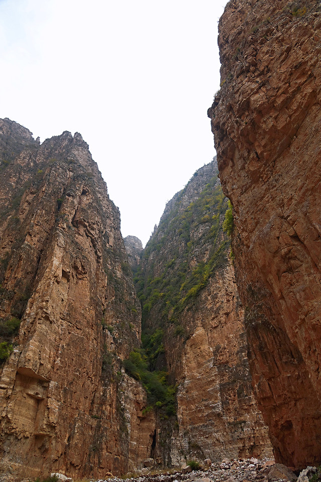 初进入水峪,你可能会感觉“景色平平”,入口处崖壁陡峭,山石高耸,沙石遍地,据说这里曾是蔚县采石头的地方。如果光凭借入口处的印象就给这趟徒步行程下定义,我只能说too young too simple!因为随着你慢慢往里深入,就会发现这是一条“宝藏峡谷”!
