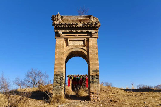 最显眼的是邢家庄西堡墙外东南角高台上的奶奶庙,正殿结构仍在,庙院仅剩残破的庙门,奶奶庙南边正对破败不堪的戏楼。