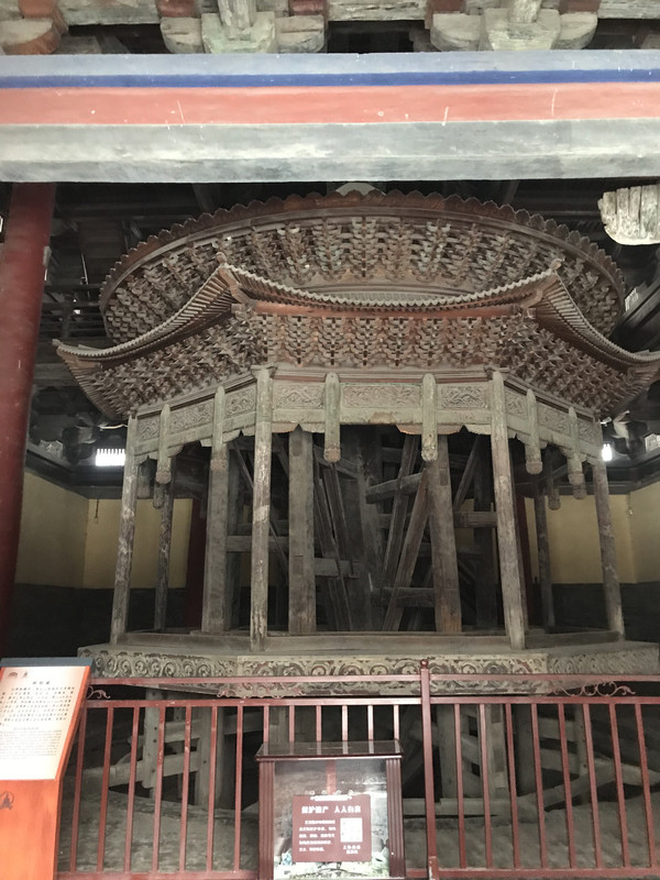国宝之三:转轮藏阁始建于北宋,梁架结构十分特殊,楼阁下层由于转轮藏的安置,柱网布局突破了常规,采用了移柱造的做法,而檐柱则采用了插柱造法,这在我国古建筑中极为罕见。