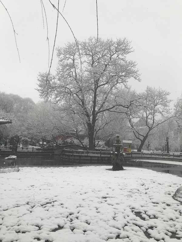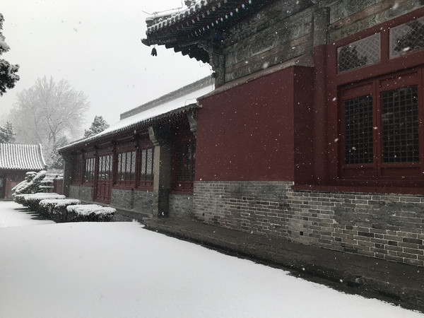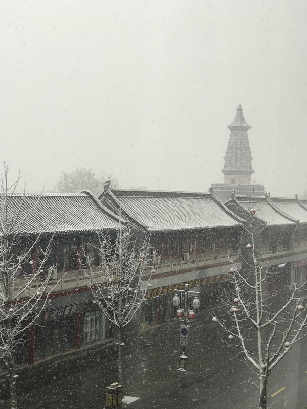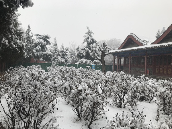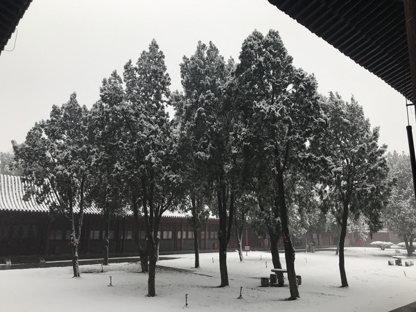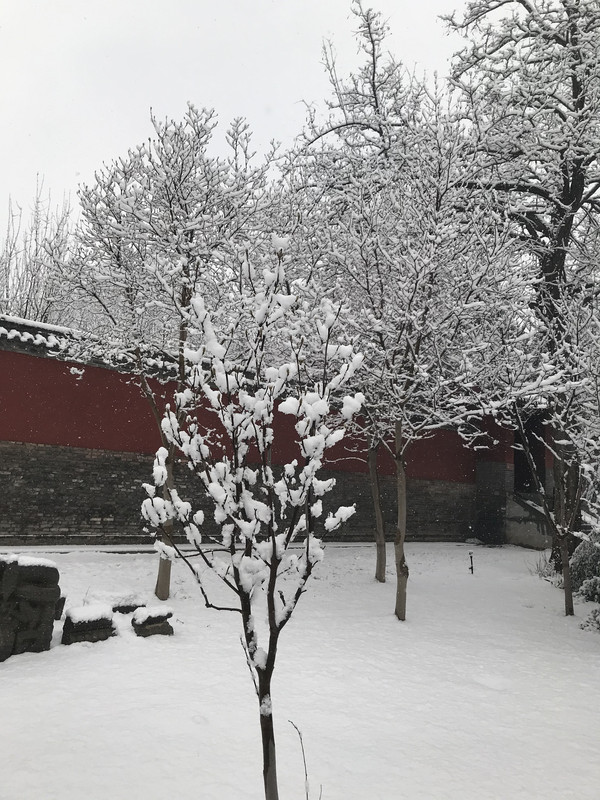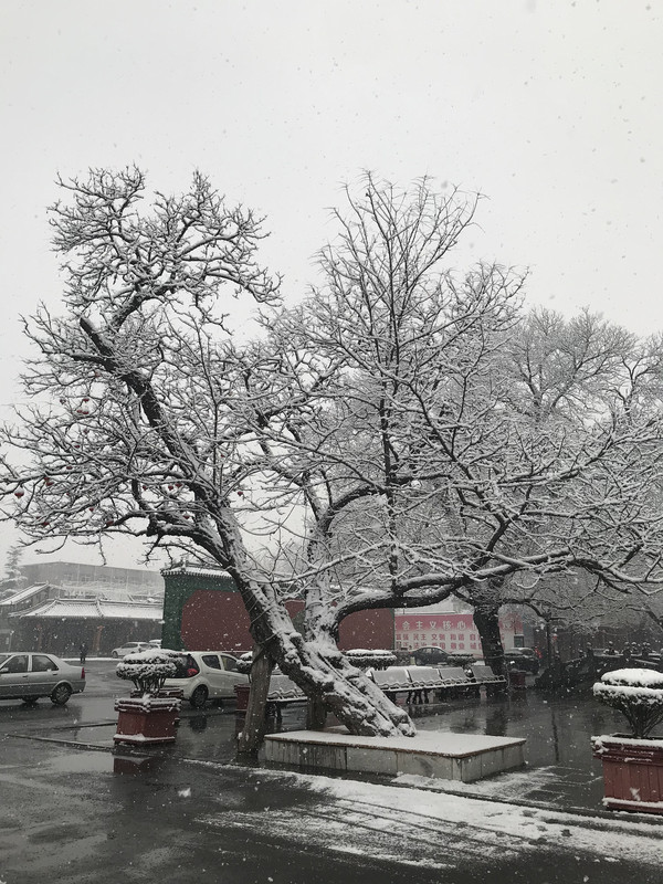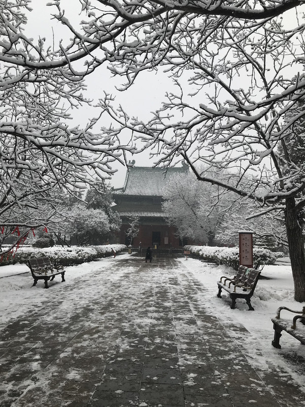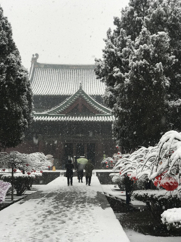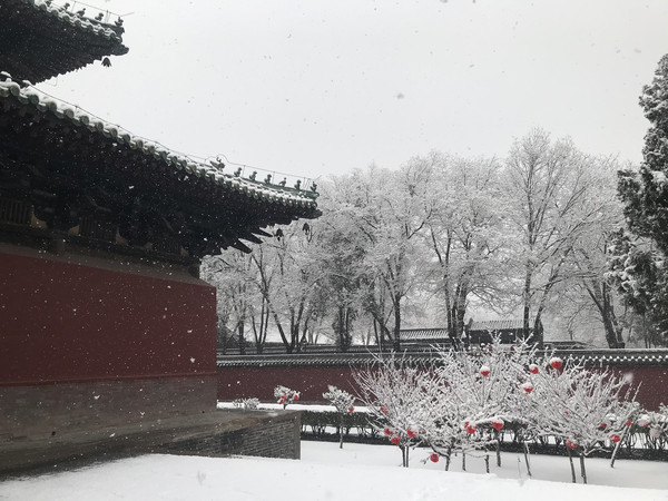 早上一觉醒来,正定下雪了,大雪纷飞,晶莹的雪花在树枝在瓦间,点出一片银装素裹,这雪是杳渺幽深,又意蕴悠远,不必羡慕北京的故宫,这里也是美不胜收。