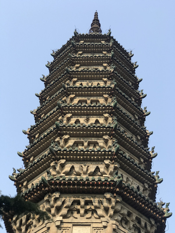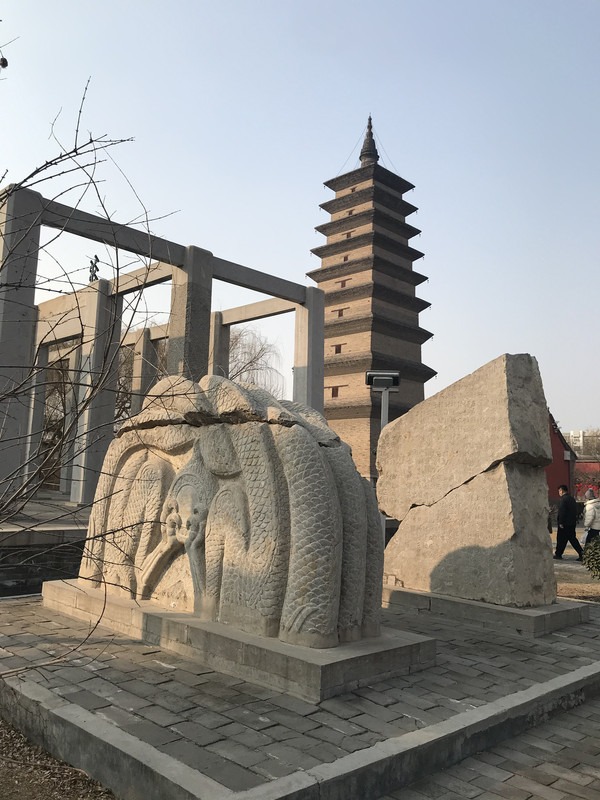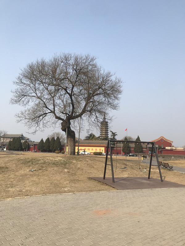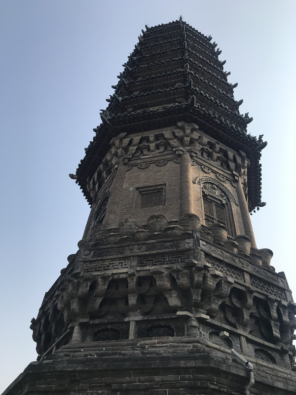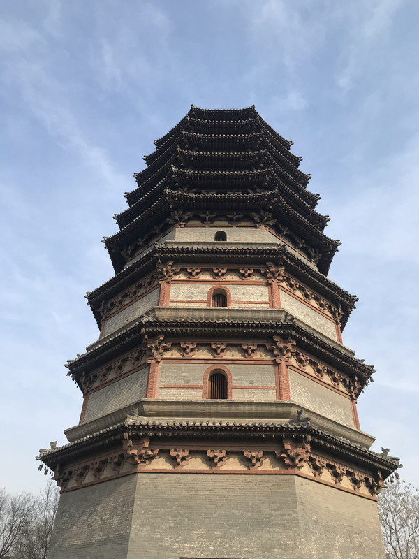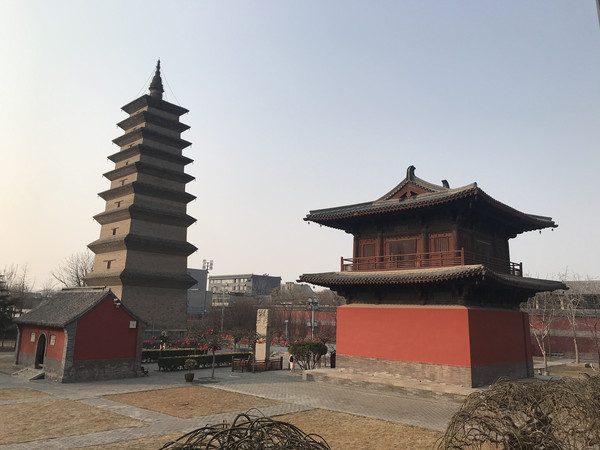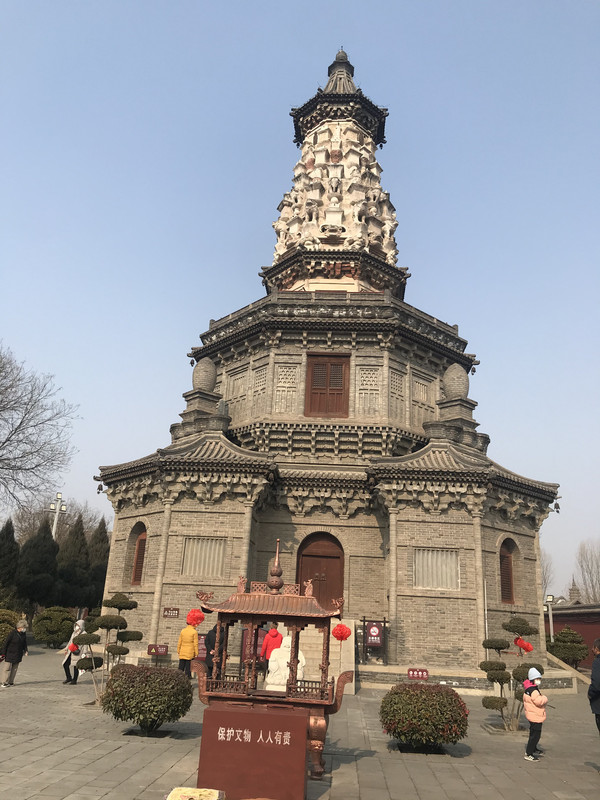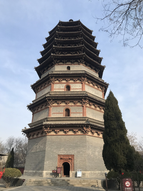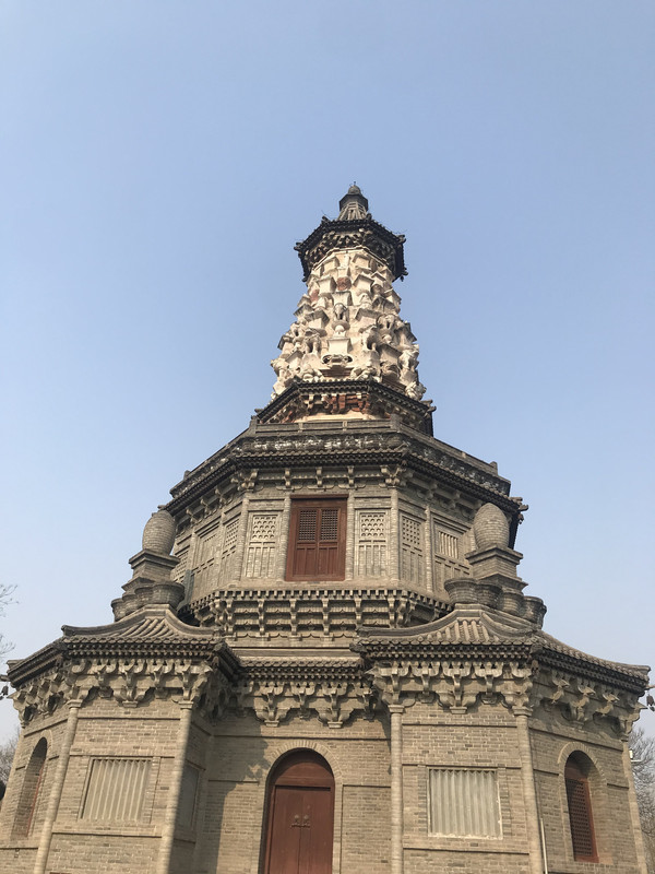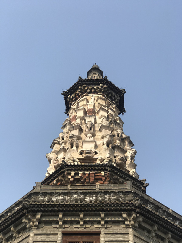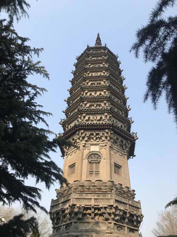 进来就会看到华塔,确切说,这里只剩下这座塔了,但是依然看了很震撼,华塔由主塔和附属小塔组合,全用砖砌,通高33.35米。主塔塔身的一、二、三层为楼阁式构造,平面呈现为八角形,并在层檐下饰以斗拱,为砖制,钩心斗角,形制奇特。