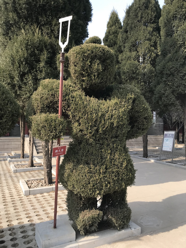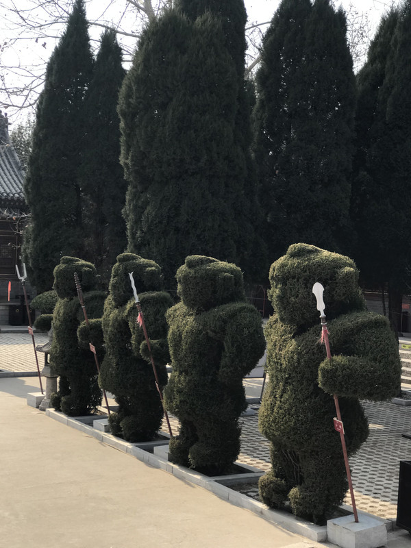 道理的两边的松树修剪成三国里的人物,就连兵器也做的惟妙惟肖,看起来很可爱。