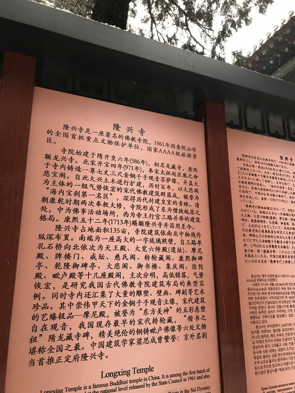 虽然虽然下着雪,但是正因如此,隆兴寺让我爱上它,一座座古代的建筑让我仰望,一件件珍品让我难以忘记,天空作美,让我在特别的大雪纷飞来到这里,了解了这里的历史,我谢谢你,正定的雪。