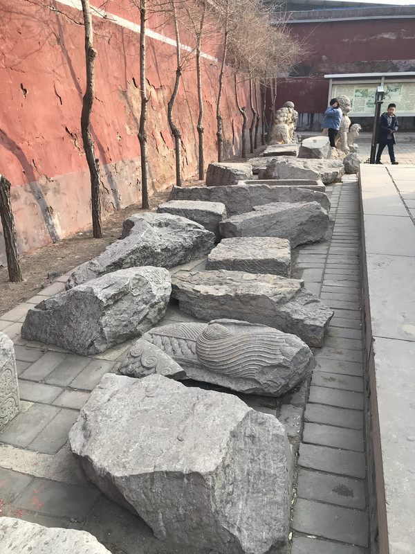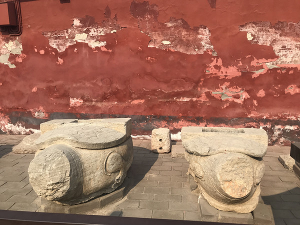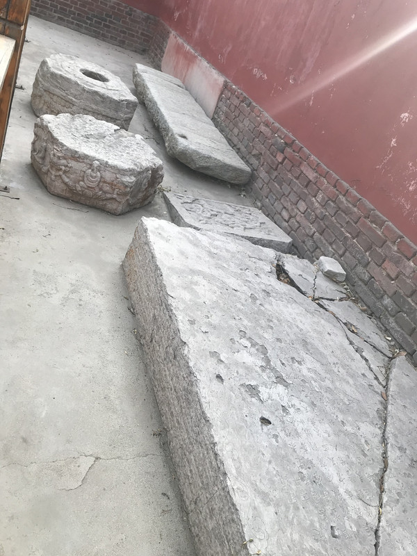 在华塔后面还会看到一些残破的石碑,分别是明代重建广惠寺的记录和1500年重修阳和楼记录。可惜时间太久,字体已经看不清楚了。