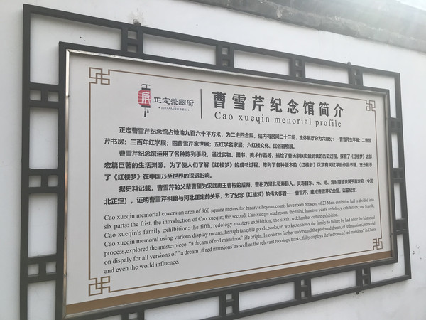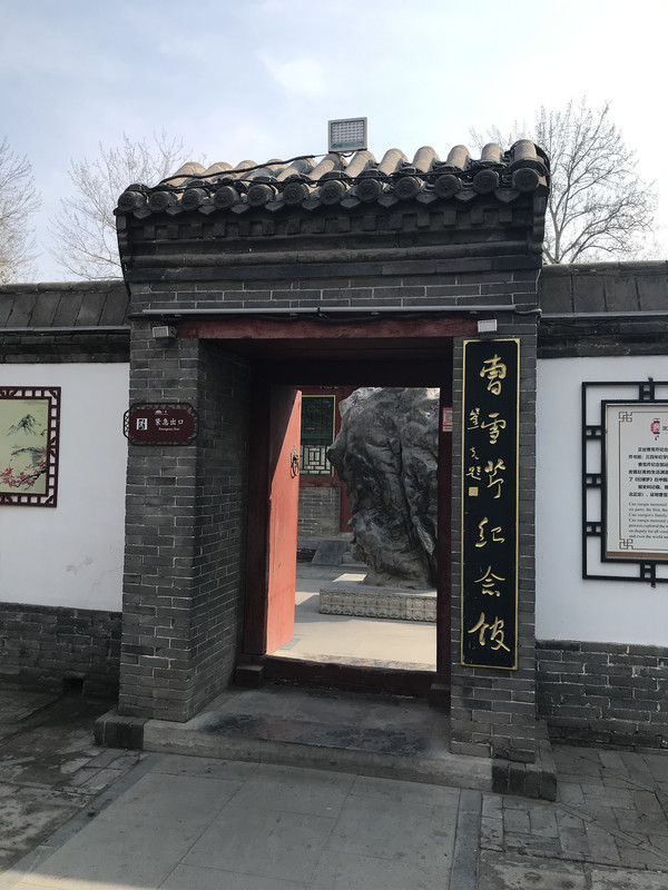 进门右手马上会看到曹雪芹纪念馆,是 第一座把作者和作品融汇在一起的人文景观。纪念馆占地九百六十平方米,为二进四合院,院 内有房间二十三间,主体展厅分为六部分:一、曹雪芹生平展;二、曹雪芹书房;三、百年红学展;四、曹雪芹家世展;五、红学名家展;六、红楼文化、民俗器物展。
