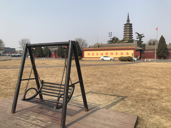 离开广惠寺下一站步行5分钟可以到达临济寺,一路上可以看到宽阔的草地,虽然是冬天,但是也是心旷神怡,做做摇椅很是惬意。