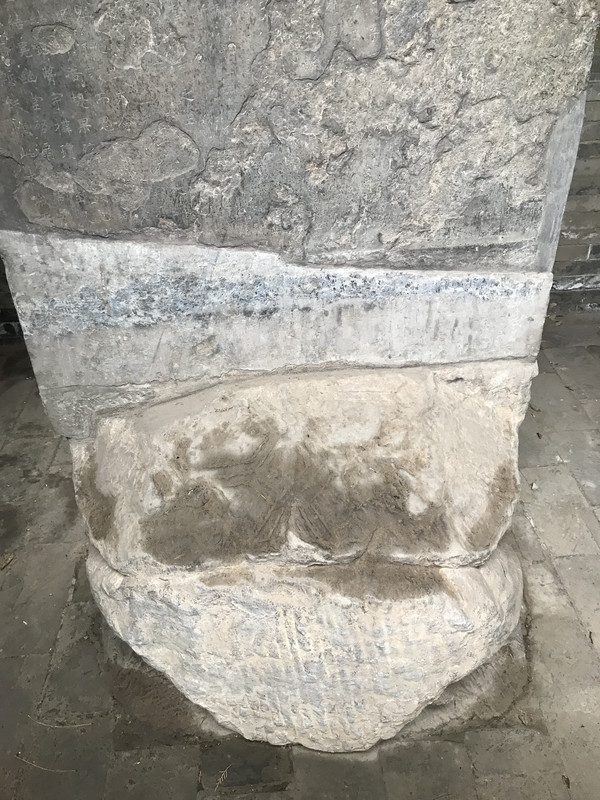 在旁边还有一些零散的石头,据说这是残破的碑首,碑身。