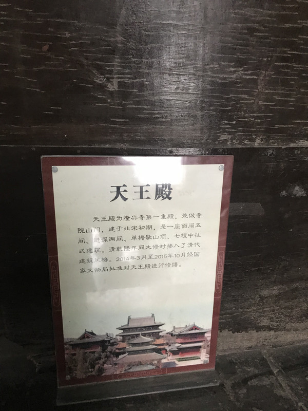 正定留有一句这样的说法:“寺大山门远,山门在河南。”因隆兴寺未设山门,天王殿就是进入隆兴寺的第一重殿。