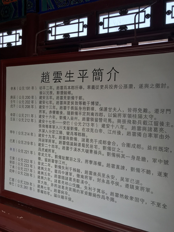 从荣国府出来,步行10分钟就到了赵云庙,正定是赵云的故乡,怎能不参观,门票10元,不是很大, 赵云字子龙,常山真定(今石家庄市古城东路一带)人,三国名将,有“常胜将军”之称。正定县旅游局在原道光年间遗址上重建的赵云庙已于1997年4月13日正式对游客开放。新建的赵云庙气势恢弘,占地12亩,总建筑面积积1500平方米。该庙采用仿明清古建筑结构,分为一进院、二进院。主要建筑有庙门、四义殿、五虎殿、君臣殿和顺平侯殿,基本保留和丰富了原庙的历史风貌。