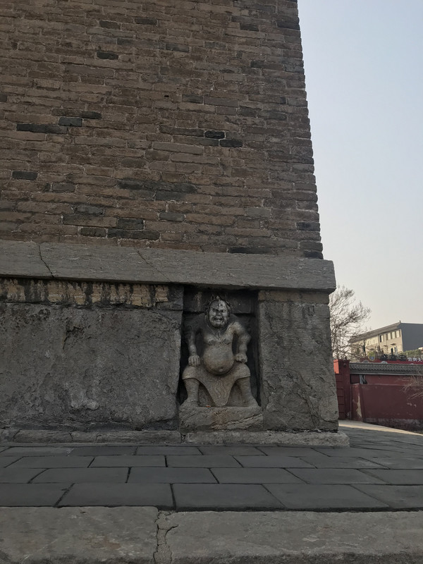 颇为有趣的是在塔的底层四面分别有八个浮雕力士,形象很是生动可爱。