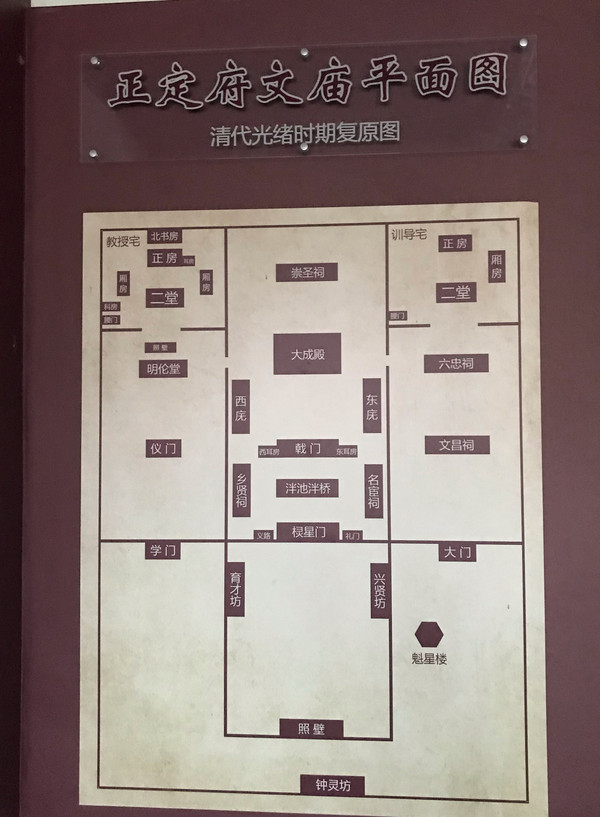 想当年的府文庙还是建筑很完整,据光绪版《正定县志》记载,“正定府为历代省会之区,故府学文庙规模广阔,气象崇宏,甲于通省”。其平面布局分三路:中路为牌坊、棂星门、泮桥、名宦祠、乡贤祠、戟门、东庑、西庑、大成殿、崇圣祠、六忠祠;东路为学宫,前路为魁星楼,后为学堂及教学楼;西路为明伦堂等。整体建筑规模宏大,轴线布局,左右对称,极具庄严感。