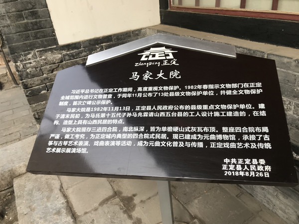 在往前不远就是元曲博物馆,免费开放那就顺便看下吧,正定元曲博物馆位于正定古城天宁寺西边的马家大院。马家大院南北总长70.5米,东西总宽13.65米,三进四合院建筑形式大体相同,均为灰瓦硬山顶,正房面阔三间,两厢各三间,进深二间,保存基本完好。在现存的古民居中,马家大院是一处保存较完好的典型北方风格的四合院民居。