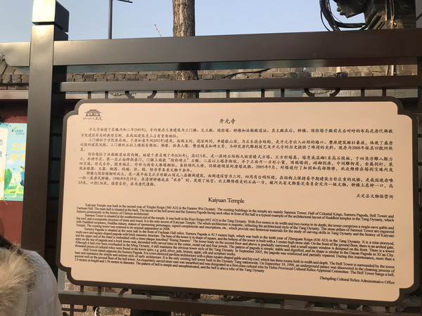 快到开元寺的时候,忽然看见一片遗址,看了介绍了解到真的不简单呀,正定古城在唐五代时期是河朔三镇之一,自唐至明清一直作为府、州治所所在。正定开元寺南遗址是一处典型的古今叠压型城市遗址。发掘确认遗址囊括了唐、五代、北宋、金、元、明、清七个历史时期连续的文化层叠压,揭示了晚唐五代时期城墙的建筑结构,确立了晚唐五代时期真定古城子城的存在,明晰了唐代开元寺南部边界以及宋金时期开元寺南部街巷、民居布局,阐释了唐至明清时期真定古城的发展脉络,为古今叠压型城市考古提供了范例。