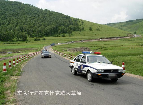 按计划,车队进入内蒙古乌兰布统后将到达克什克腾旗的中心地带西拉沐沦旅游风景区。在八公里多长的一段水流相对平缓的西拉木沦河里体验漂流的乐趣。在乌兰布统,前来开道带队的内蒙古警车早已迎候在那里,车队在警车的引领下开始了内蒙古克什克腾大草原之旅。
