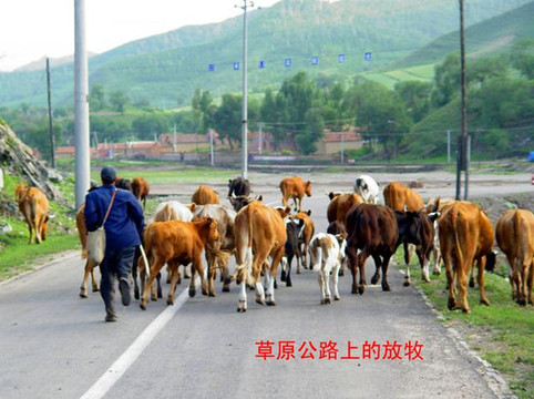 进入克什克腾旗后,由于记者有拍摄任务,所以走在车队前面很远的地方停下。站在高处向远方眺望,只见长长的车队打着“双闪”,在警车的引领下,鱼贯而行在群山起伏,绿茵茵大草原上的景象十分壮观。