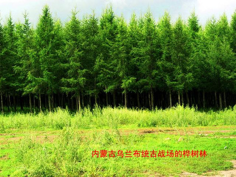 史料记载,乌兰布统是古战场,它位于境西南浑善达克沙漠南缘。在沙漠与草原接壤处,一峰突起,旷世极天。康熙以20万大军遏噶尔丹大战于此。乌兰布统峰东北,沙明如雪,白桦、红柳似翠如丹。峰西南,鸟兰公河绕山而过。峰前将军泡子广约千亩。清大将军佟国纲曾战死于此。东至塞罕坝为著名坝上草原,十二座连营、点将台亦在其间。这里曾是《三国演义》、《江湖奇侠传》等多部电视连续剧的外景拍摄地。
